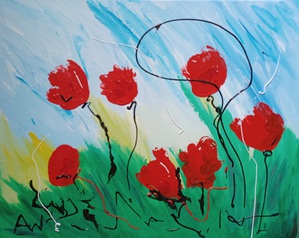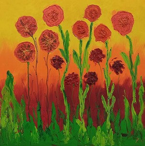 2023Landschap kleurrijk klaproos acryl op paneel